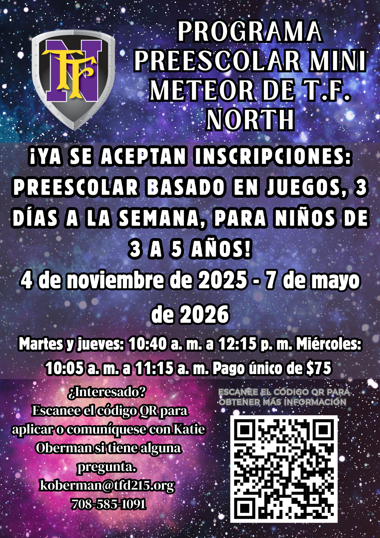 Families! Our Mini Meteor Preschool Program, facilitated by our Childcare students, will start in November! See the details in the flyer.