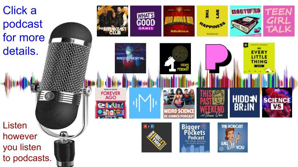 Some of these books and podcasts have more adult themes or situations; if you are uncomfortable with that, be sure to read summaries and reviews so you can pick a book that does not explore those issues. All summaries are from goodreads.com.