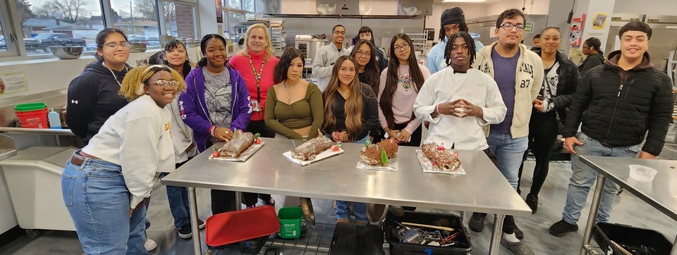 Culinary 2 and French 2 students make Bûche de Noël cakes
