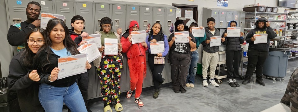 Culinary students earn their SAFE FOOD HANDLER's Certificates from SERVE SAFE sponsored by the National Restaurant Association