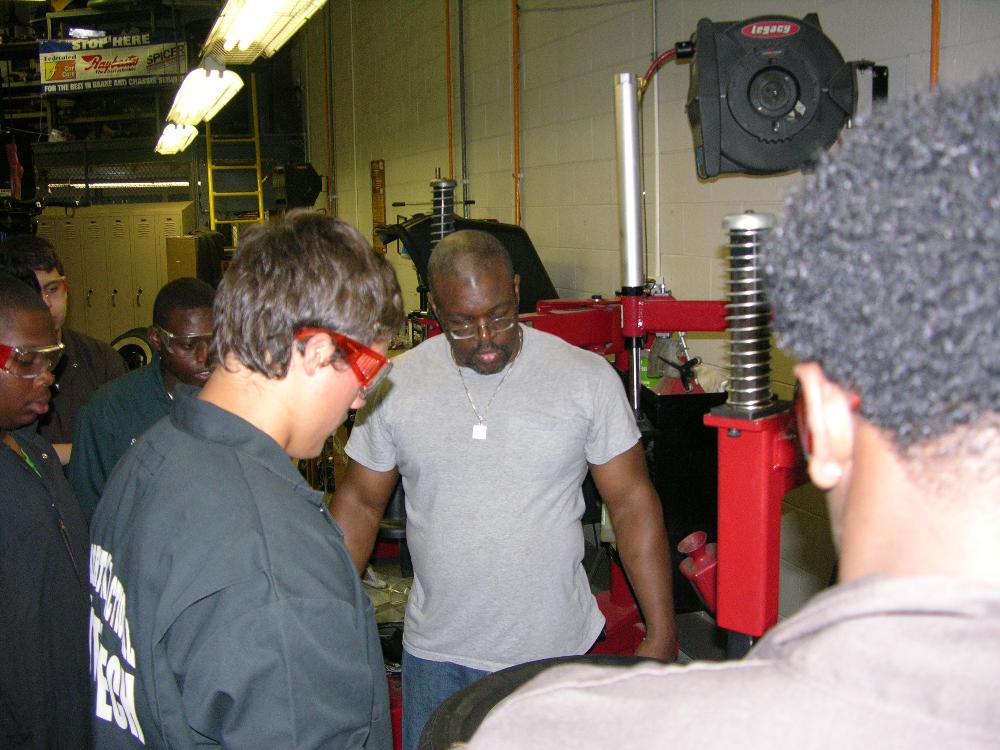 Click to see a larger version Auto Tech Mr. Reilly supervising Auto Tech I students repair a tire Skip to end of gallery Skip to start of gallery