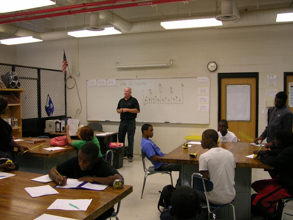 Click to see a larger version Building and Construction Mr. Quinlan teaching Building and Construction I Skip to end of gallery Skip to start of gallery