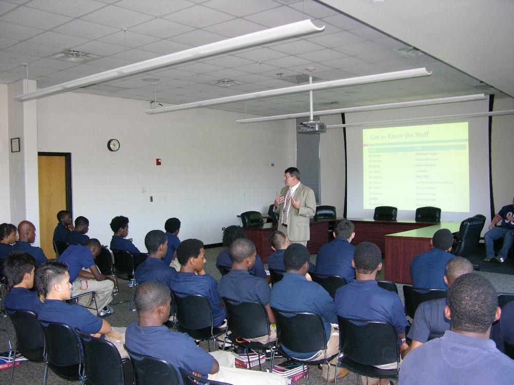 Click to see a larger version Freshman Academy Mr. Farlow addressing Freshman Academy students during orientation Skip to end of gallery Skip to start of gallery