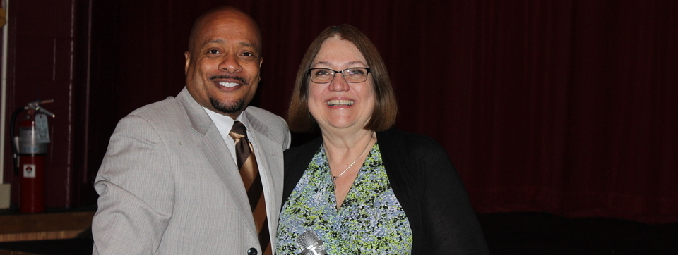 District 215 Superintendent, Creg E. Williams poses with TFS Principal, Judy Whalen on her last official day of work before she retires.