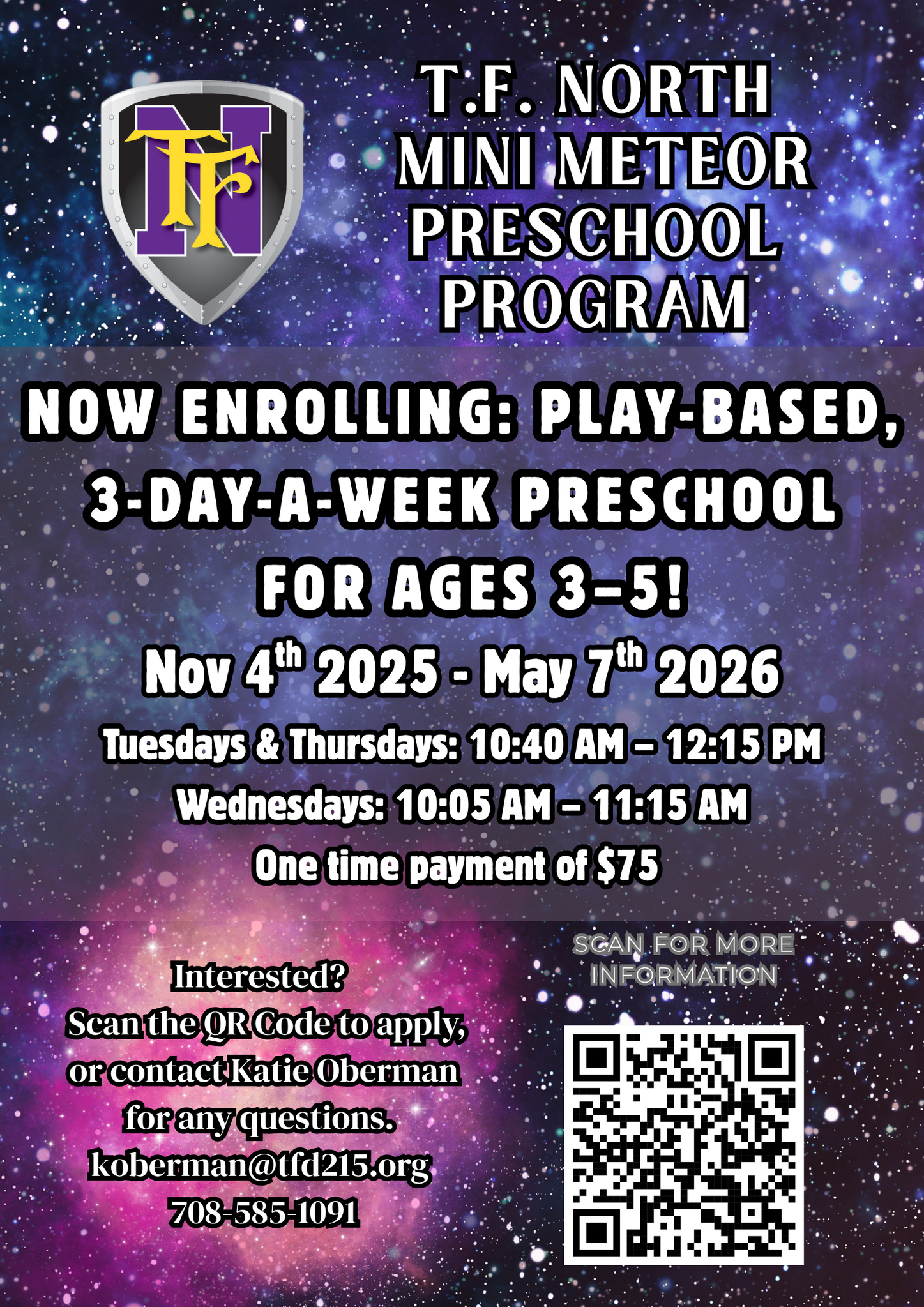 Families! Our Mini Meteor Preschool Program, facilitated by our Childcare students, will start in November! See the details in the flyer.